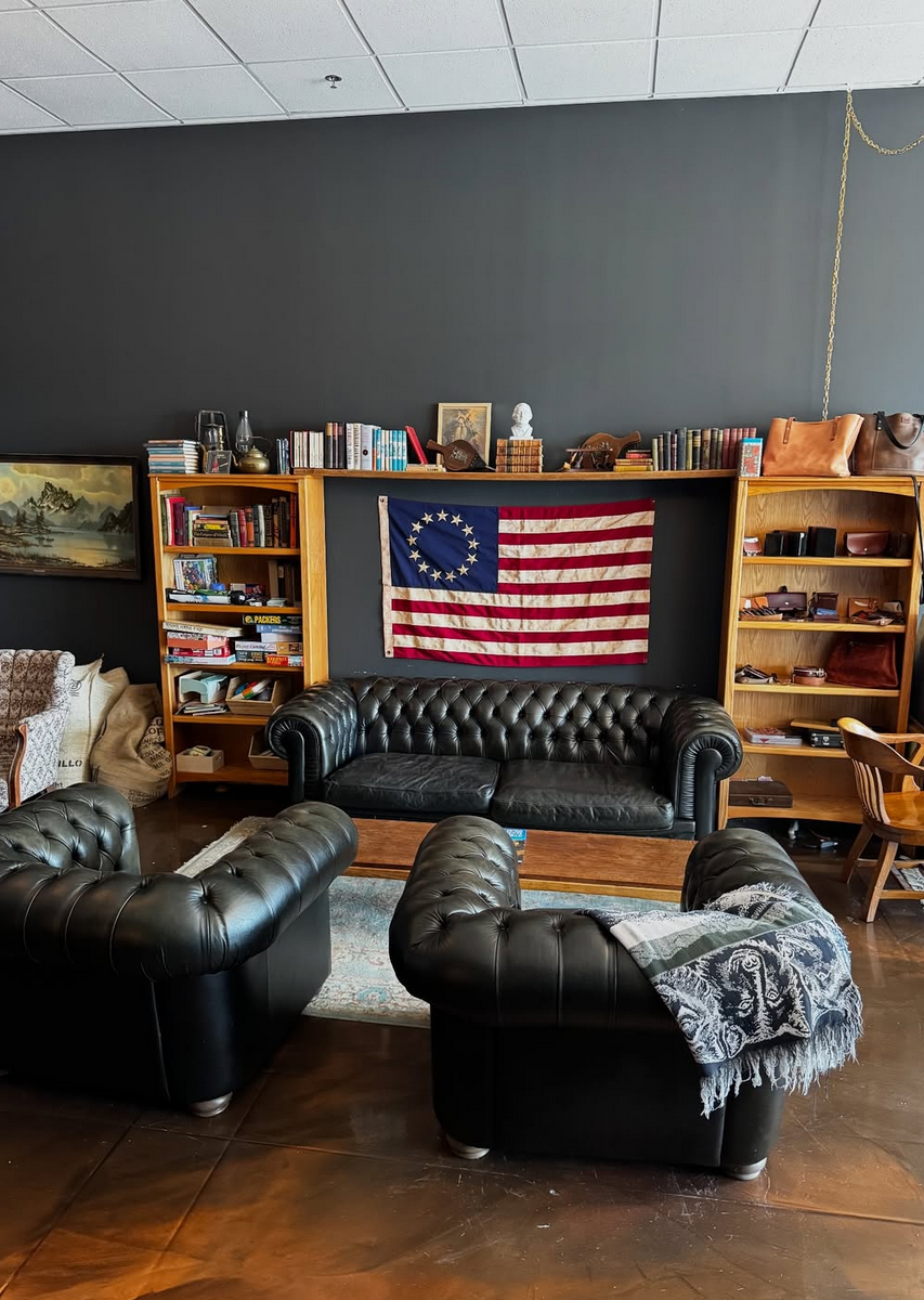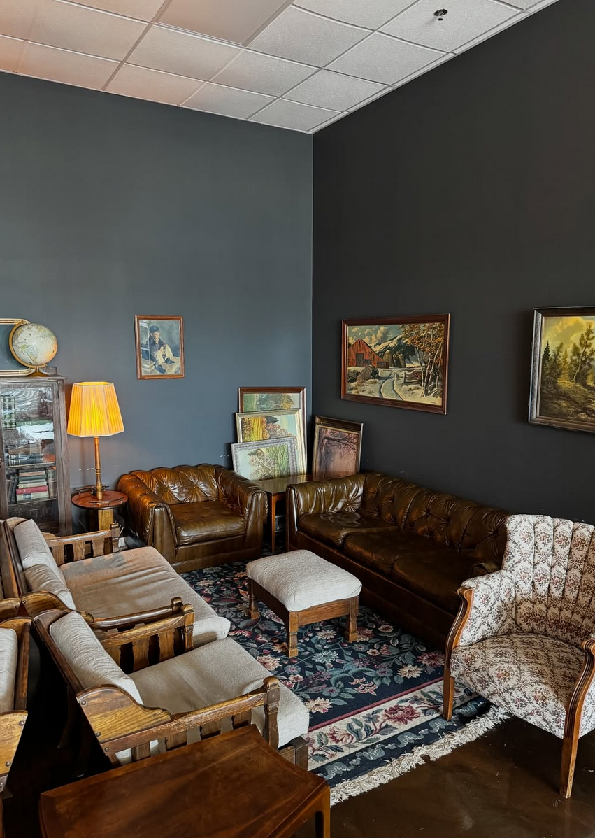 For what is generally a small space, there is SO many options for comfortable seating. Couches, fancy leather chairs, and some various coffee tables between them. There is a chandelier hanging from the ceiling, and large ornamental rugs on the floors. Even the way Noah presents the business on social media is beautiful. I’m excited to see where this goes!